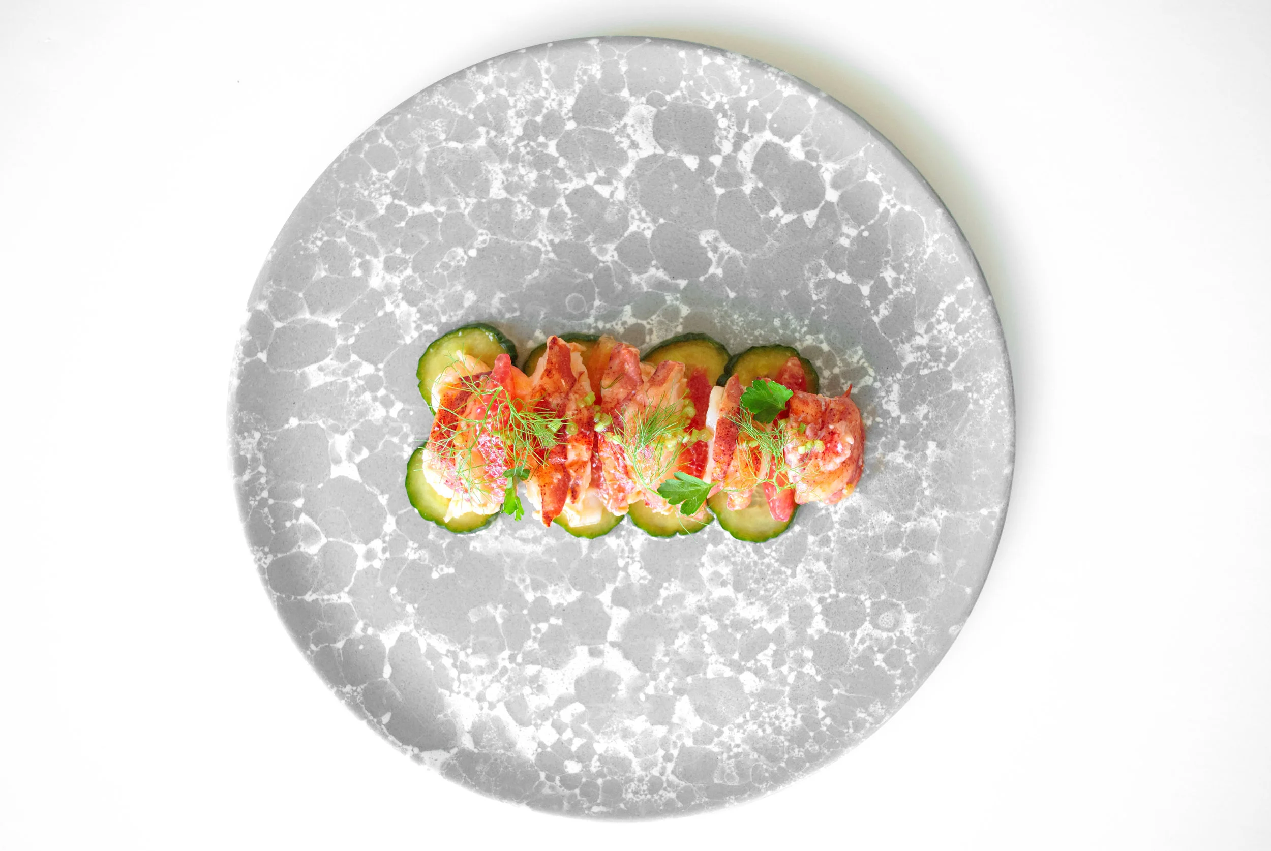 After looking around to see if anyone had done anything with it, I couldn’t find much. Besides a European chef making gin using lobster, which by the way is very interesting. With enough brainstorming, researching and thinking, I had it figured out. Lobster cooked in lemongrass butter finished with a gin vinaigrette, blood oranges, and pickled cucumbers. I instantly knew how to plate it.